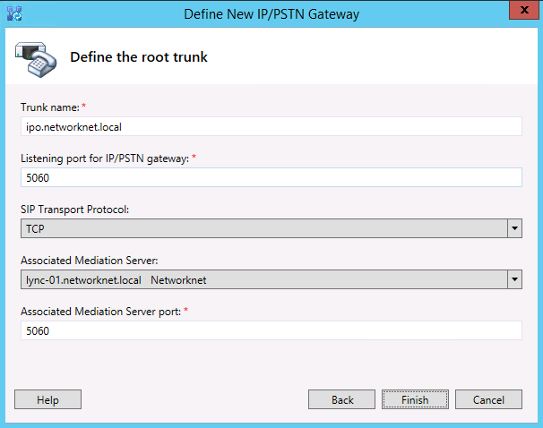ITSP Proxy Address: 192.168.200.9 (IP address of the Lync Mediation server)
