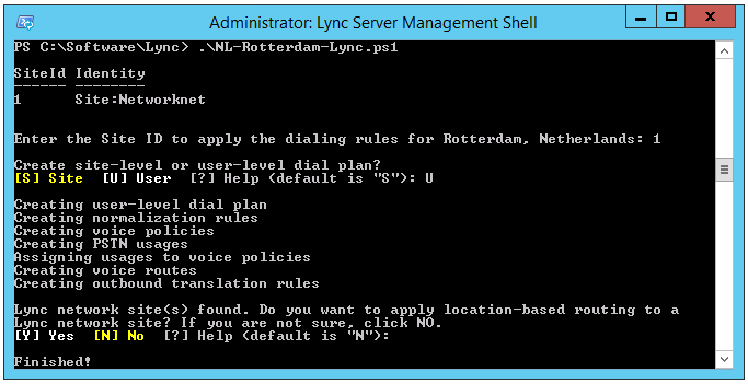I run the script on my Lync server by selecting my Networknet site and creating user-level dial plan.
